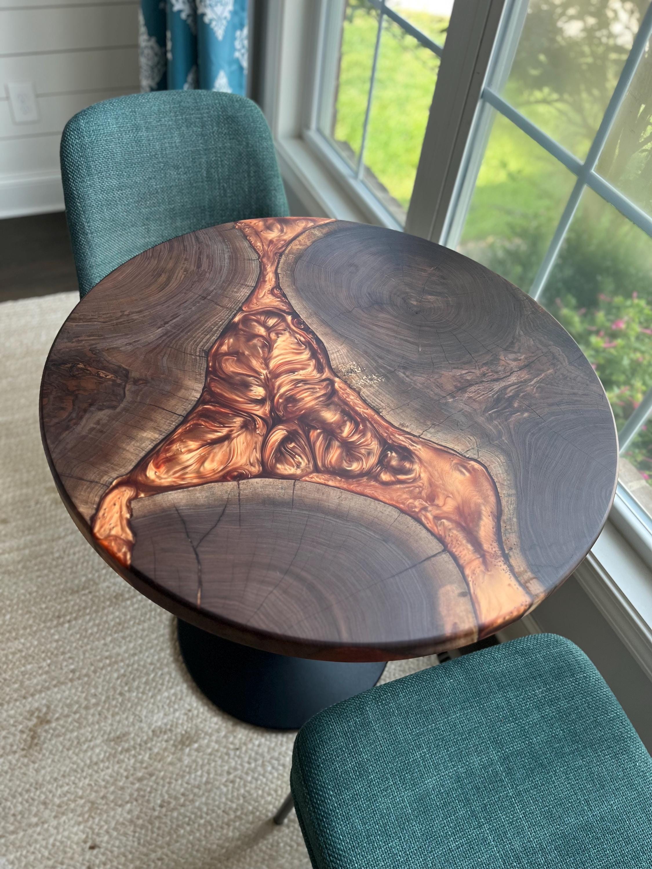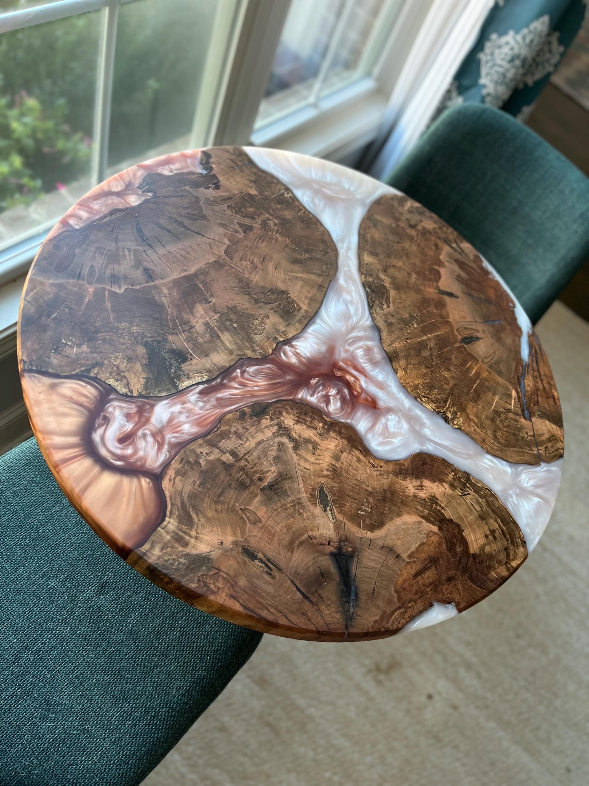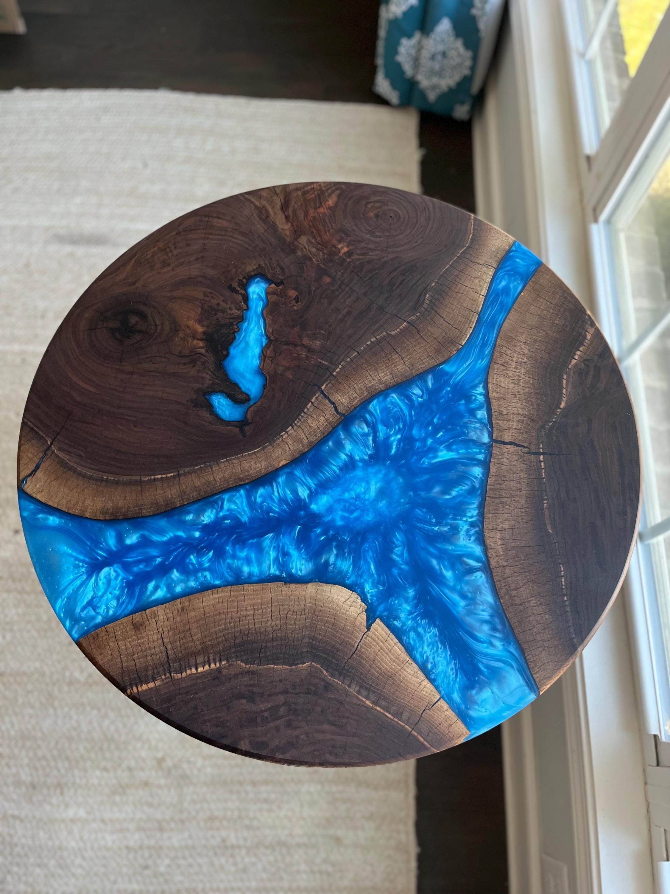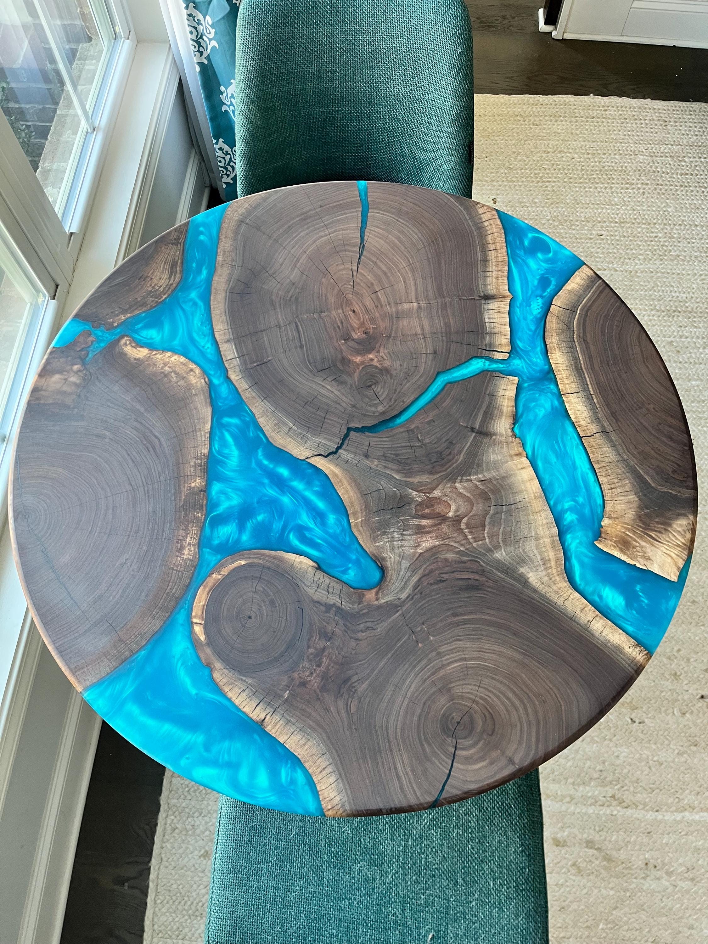The products from this shop are absolutely amazing! The owners work with you to create one-of-a-kind, custom pieces. You choose the type of wood and epoxy colors, and they create a high quality object for your home. They also provide guidance regarding table bases and how to attach them. Our table totally exceeded our expectations!