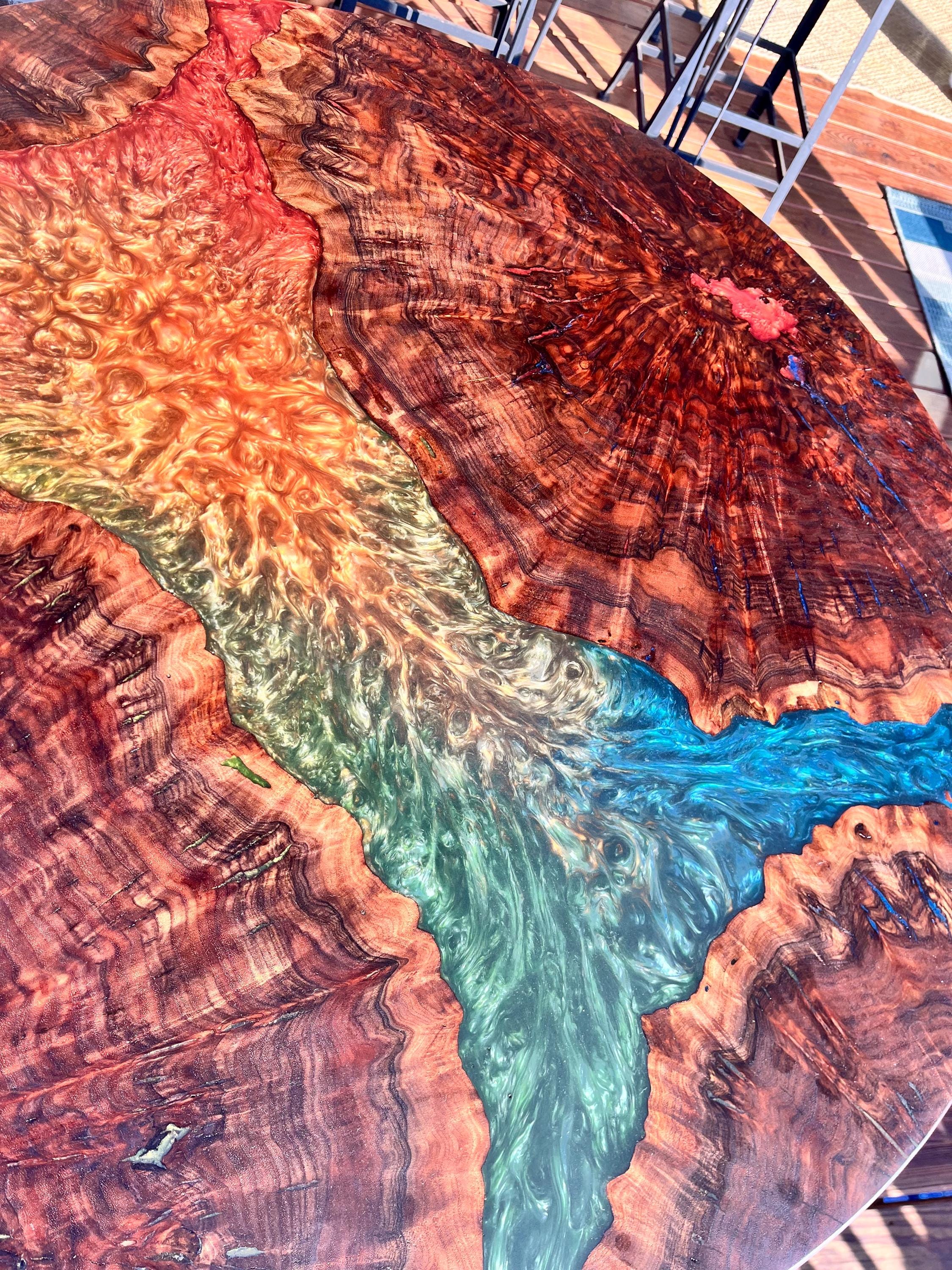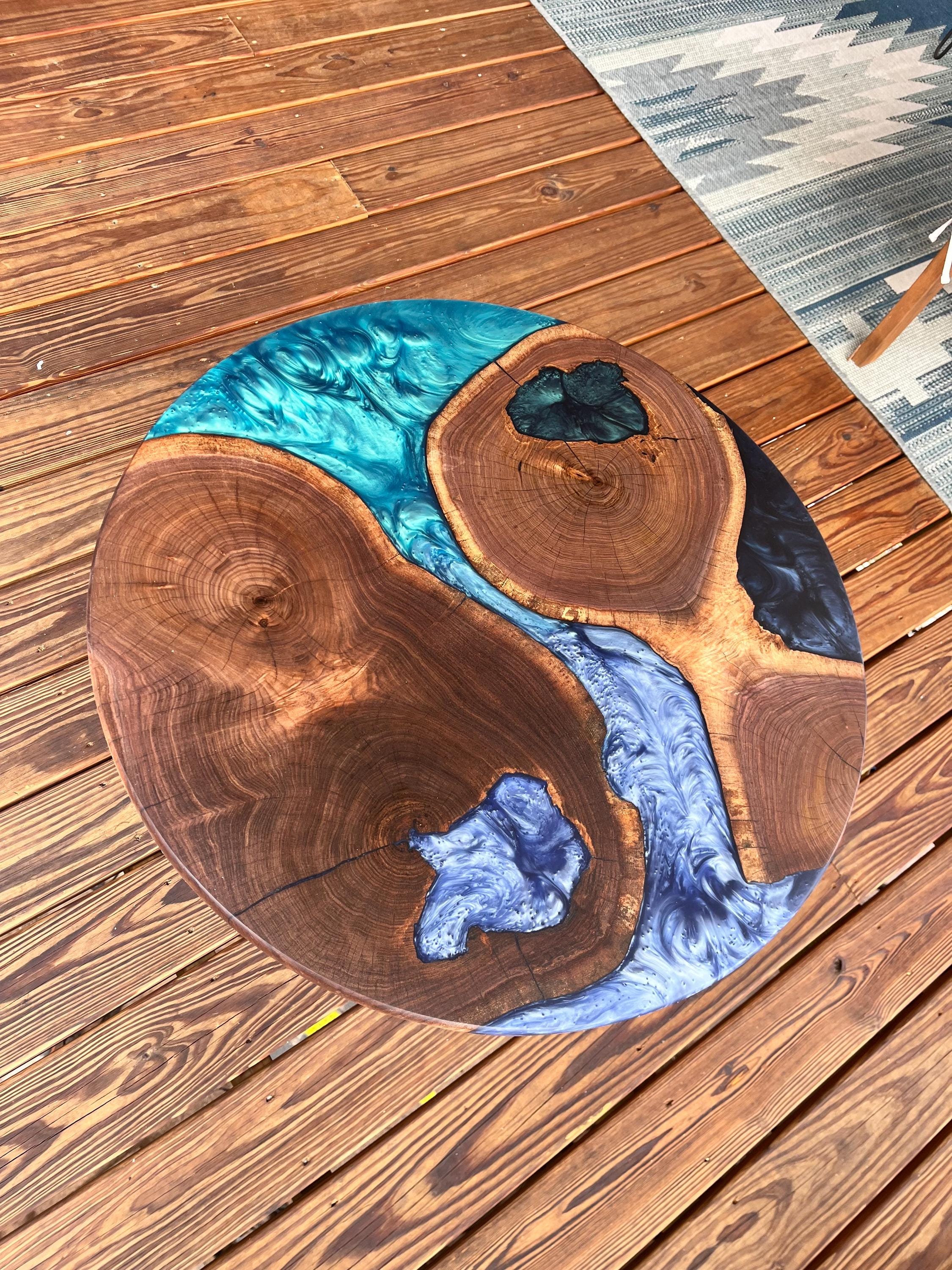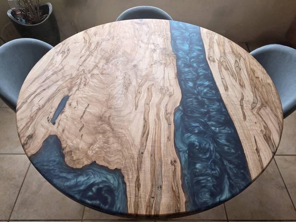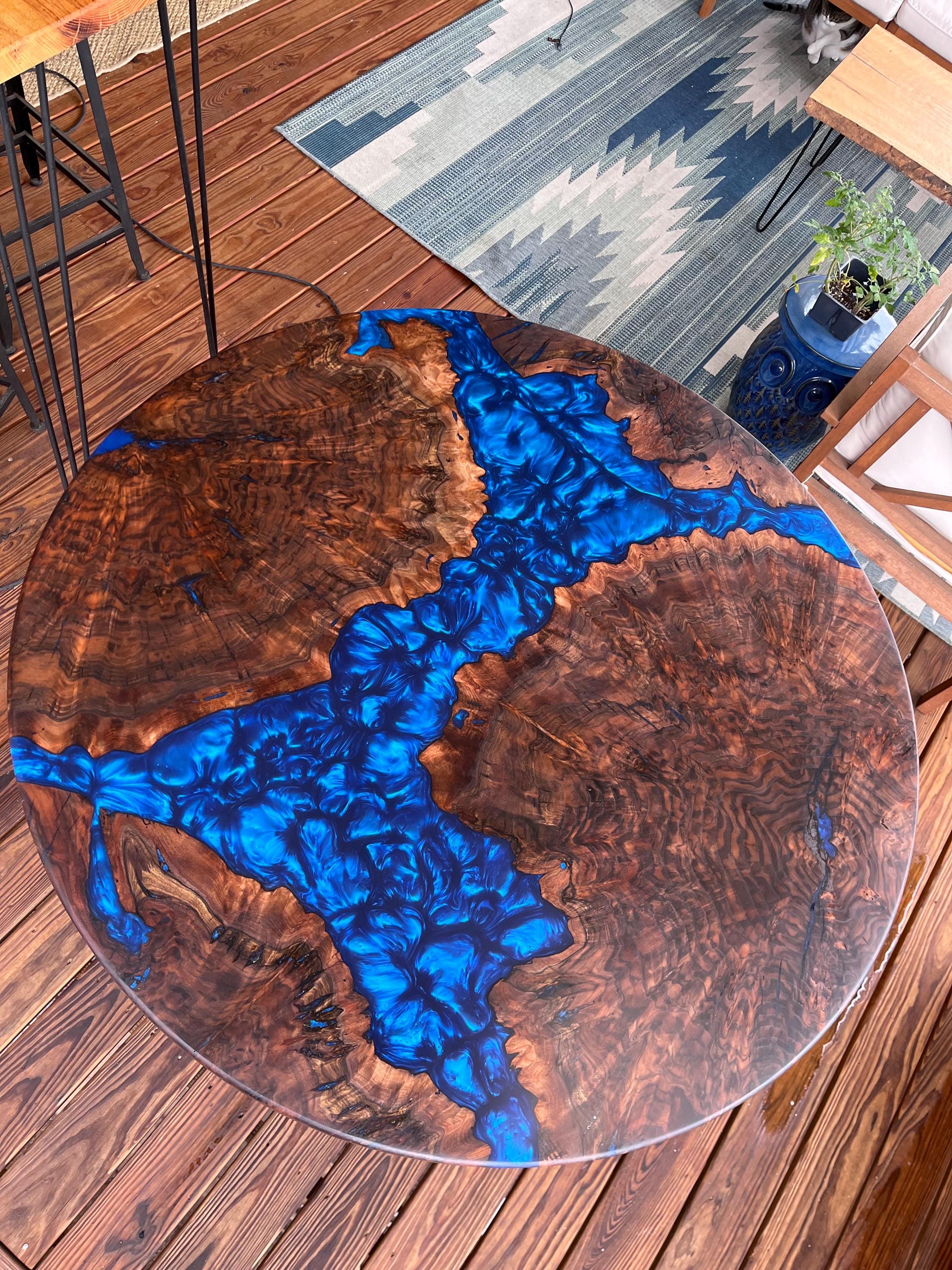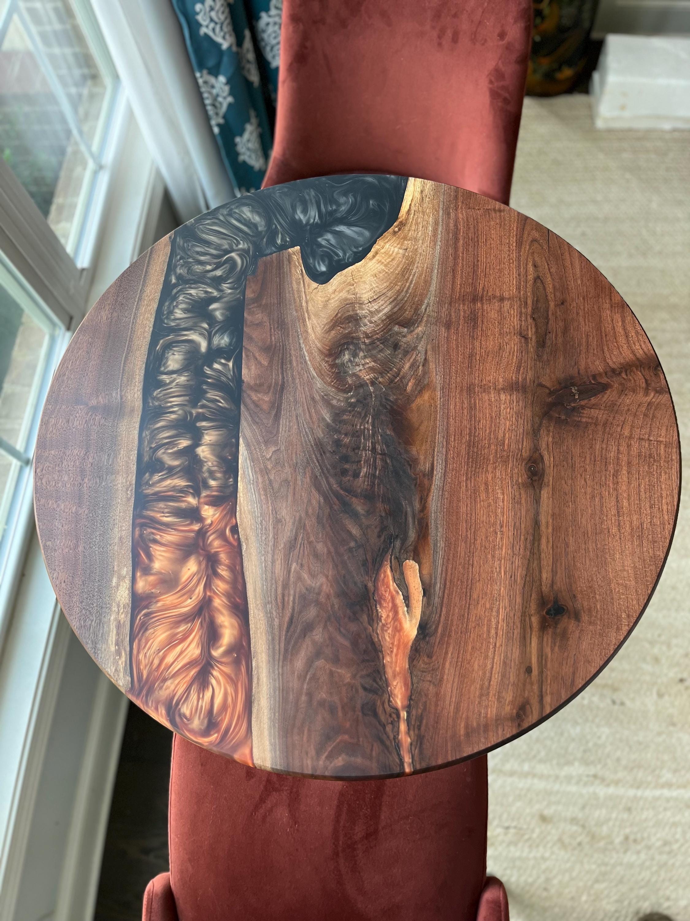 The products from this shop are absolutely amazing! The owners work with you to create one-of-a-kind, custom pieces. You choose the type of wood and epoxy colors, and they create a high quality object for your home. They also provide guidance regarding table bases and how to attach them. Our table totally exceeded our expectations!