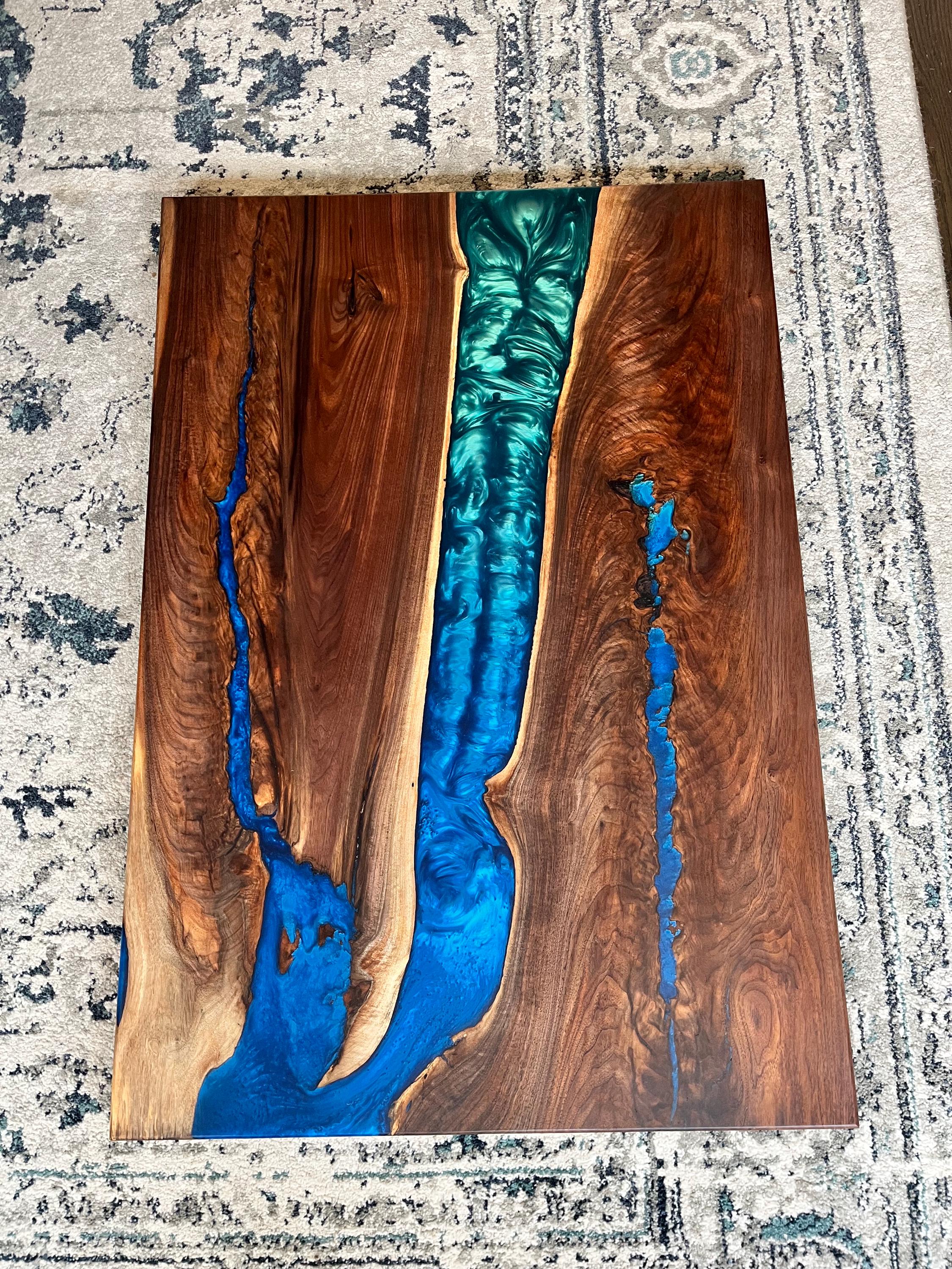 Choose your wood type/size and your epoxy color in the drop down options (see final photo for color names).