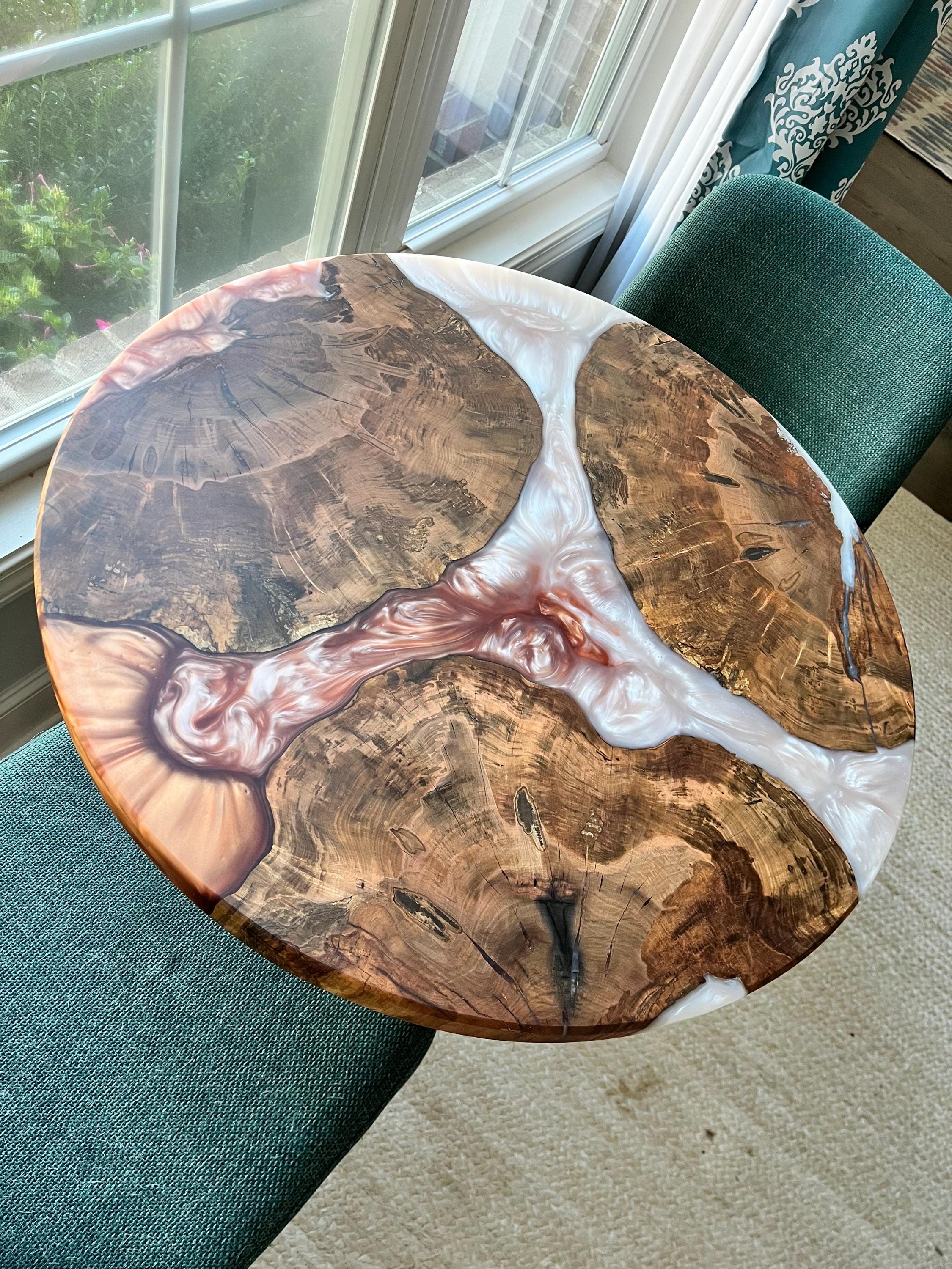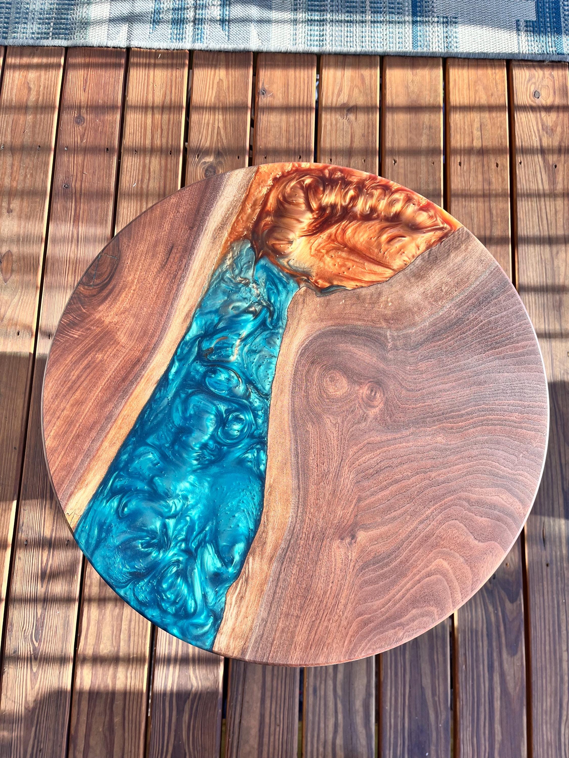 Be a part of the design process! Select a few design options and leave the rest to us. We'll make a table customized to you that exactly fits your space. This listing is for tables made in our 24" mold. Final sizing varies between 23.125 - 23.75 diameter.
